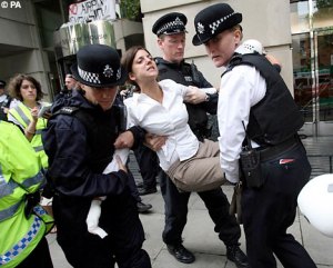 Women are disproportionately represented in environmental organizations: they are often a majority of grassroots/local members and activists but are very few officers or leaders of major organizations. Often women, and the specific effects of environmental degradation on them, are specifically (if not intentionally) left out of papers, conferences and legislation surrounding environmental issues. Increasingly (and alarmingly) environmental organizations that are committed to nonviolent tactics, such as gluing themselves to the offices of companies they are protesting, are falsely linked to militaristic environmental groups that shamefully use terrorist tactics to try and overcome the system–more on why that will never work in a later post. The women in these peaceful groups are at an increased risk of violence if other members think the use of violence is an acceptable way to get what one wants, and are often under attack from corporations, police and non-activist citizens who feel threatened by the truth being spoken.