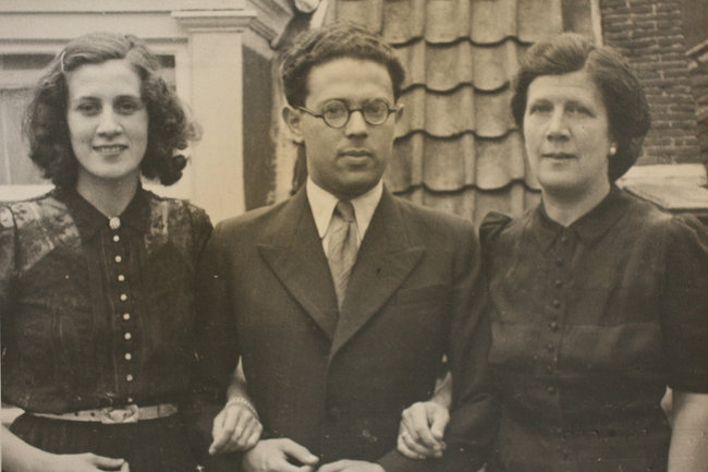 Dr. Tina Strobos, left, in 1941 with Abraham Pais and Dr. Strobos's mother, Marie Schotte. Copyright New York Times.