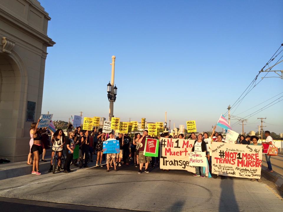 Two heartbreaking trends emerge when you look at these women side-by-side: 1. Over 85% of these women died before age 40–the youngest was only 17. 2. At least 80% of these women were women of color–more than two-thirds of them were Black. #BlackTransLivesMatter say it with me! We cannot keep silent about these atrocities. Trans women of color live at the intersection of transphobia, misogyny, racism and classism and as we’ve seen that is often a deadly combination. Sign this petition demanding the federal government investigate the murders of trans women as hate crimes. Activists in Los Angeles took to the streets on August 18 to rally and march against violence against the trans community. We must do the same. Trans people are everywhere and they deserve our support and compassion. They deserve full equality. They deserve to live.