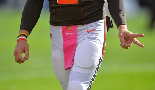 Obviously no one likes cancer and my friends are no exception, their respective points though–that death is an inevitable part of life and that we should try to heal social issues with social action rather than medical issues with social action–challenge the accepted social norm that causes even burly NFL players to don the “feminine” color pink so that more women will detect breast cancer early. Nevermind that men can and do get breast cancer too…. Despite the NFL’s Crucial Catch Program, there’s a stark contrast between pink-supporting players like Johnny Manziel who recently avoided any legal or NFL discipline after police dash-cam footage showed him schmoozing away a domestic violence incident, and pink-resistant players like William Gay who was fined for wearing purple cleats in honor of his mother who was murdered in a domestic violence incident when he was a child. Thank Gay for his brave action here.